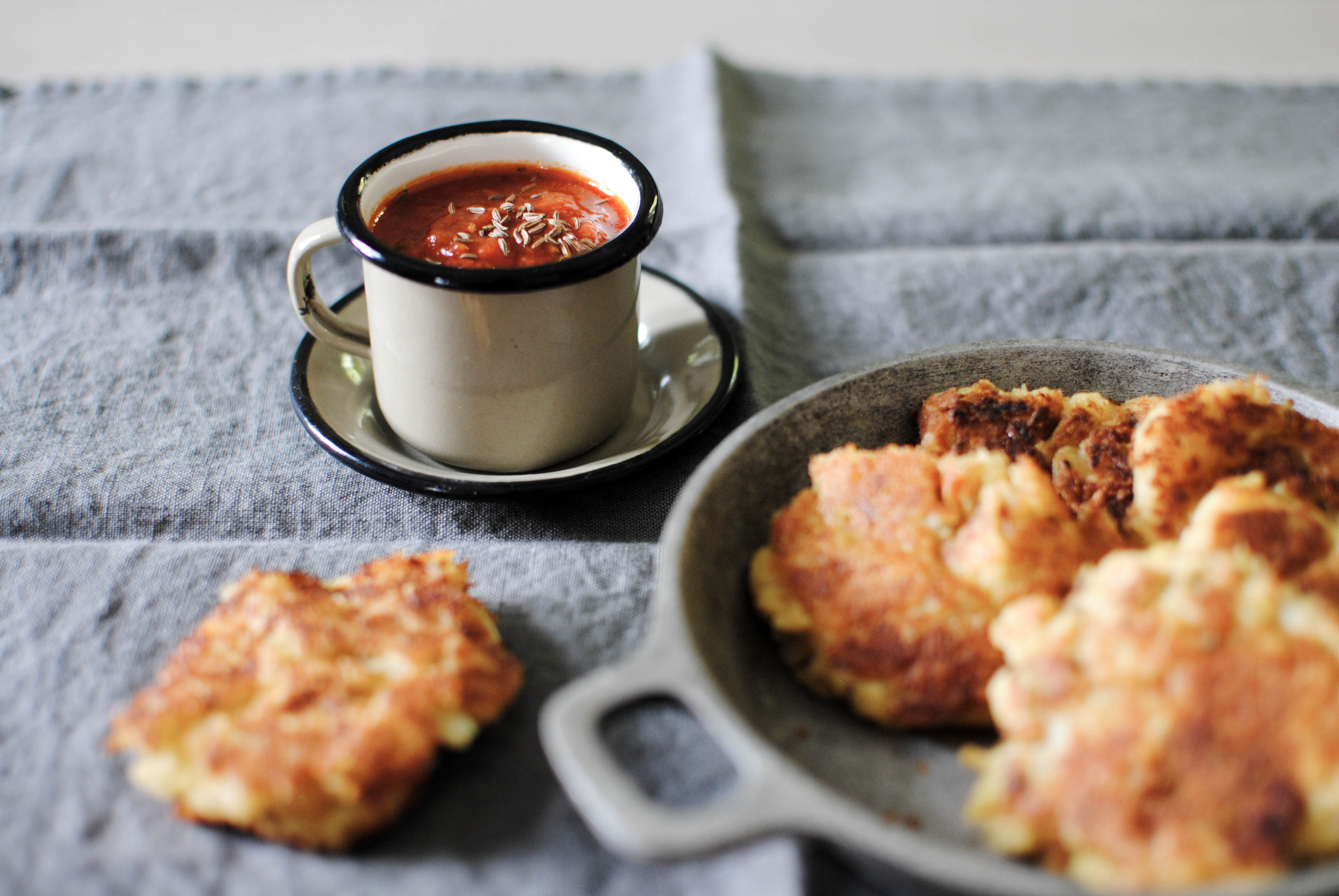 Déposez des petites boulettes dans une poêle huilée bien chaude et aplatissez légèrement.