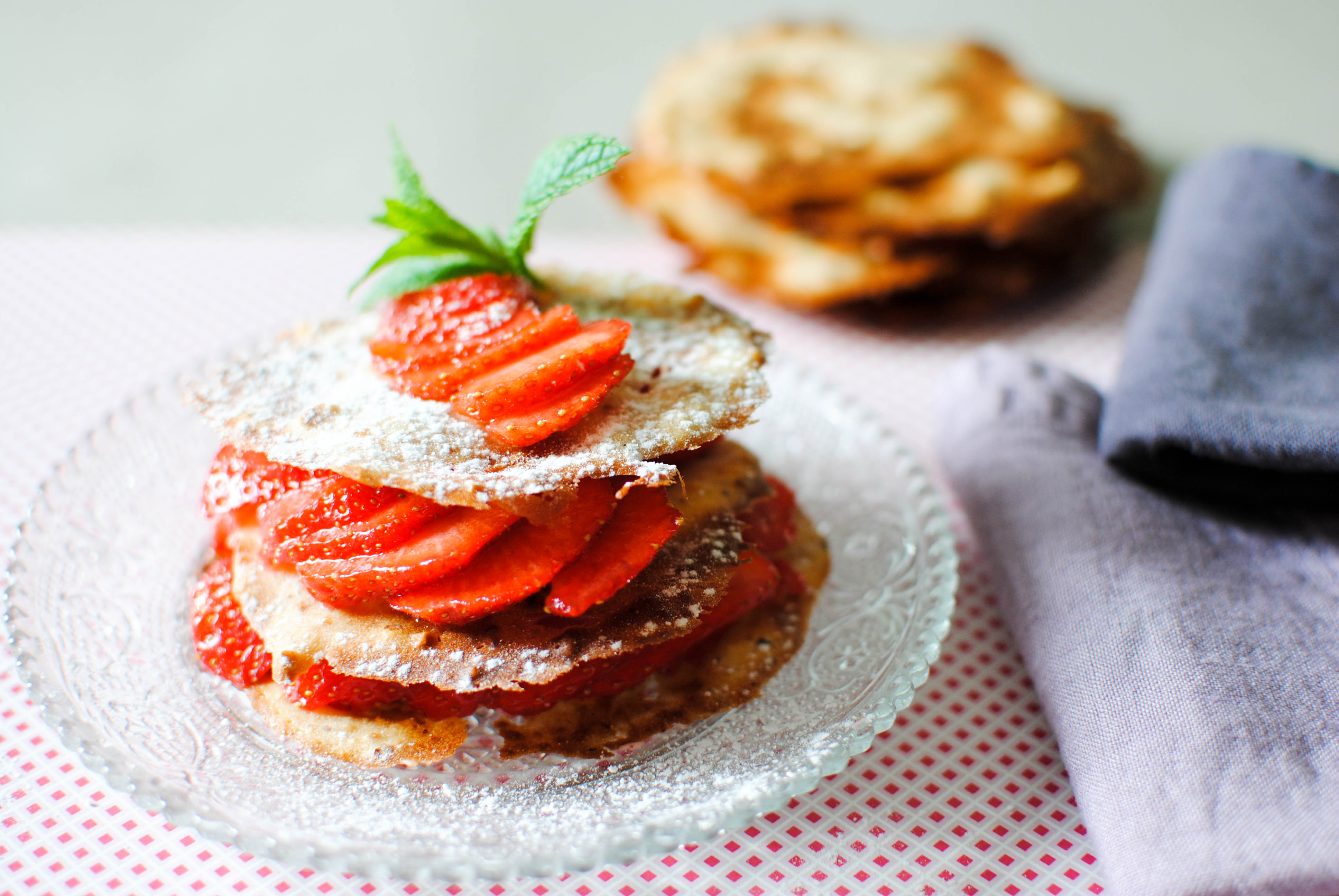Servir en mille-feuille avec des fruits de saison et saupoudrez de sucre glace !